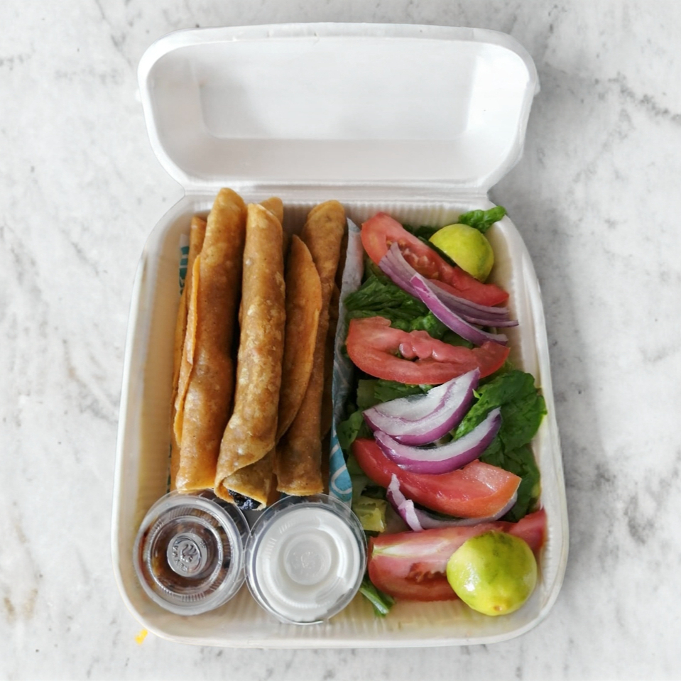 Orden de 5 tacos dorados surtidos.