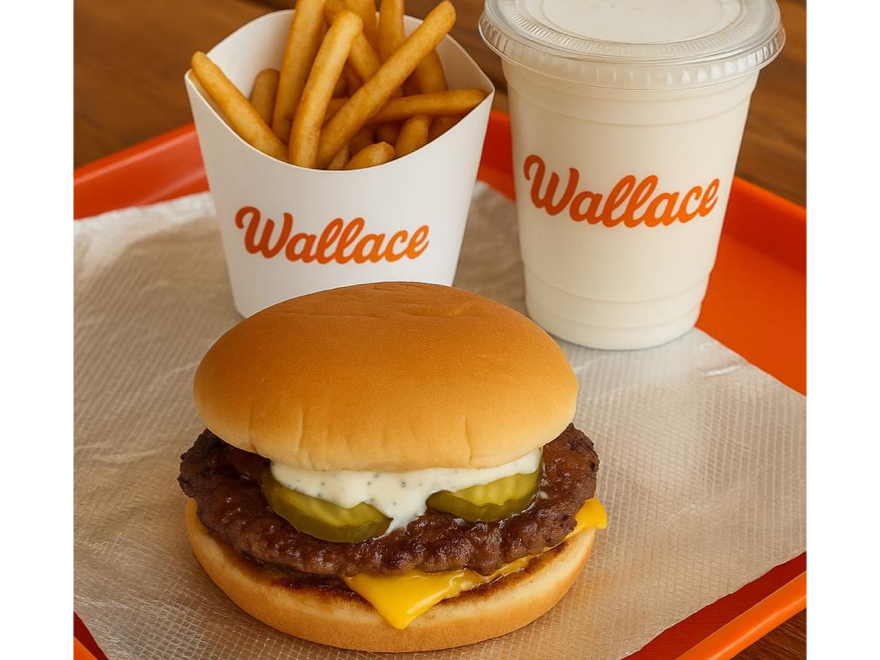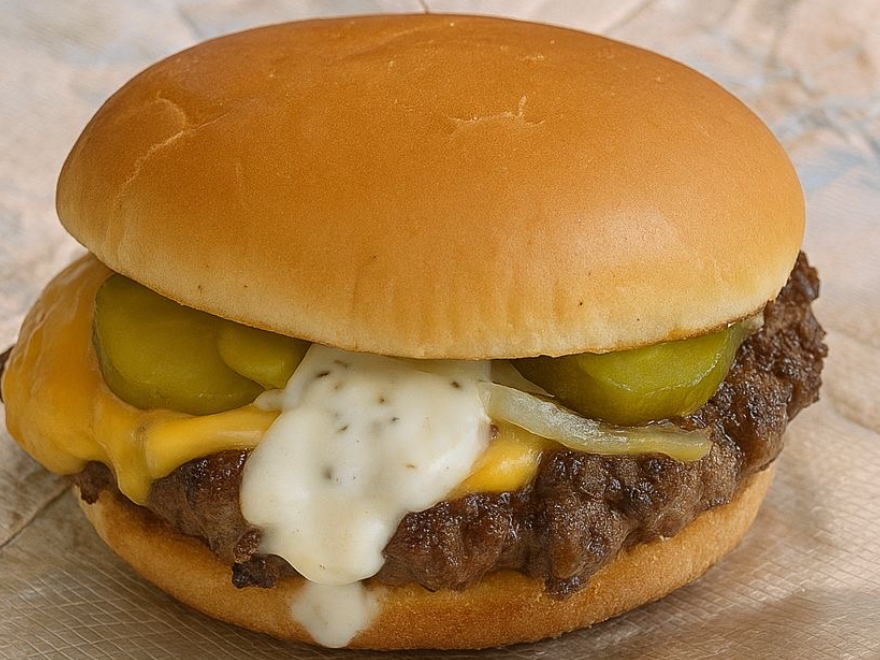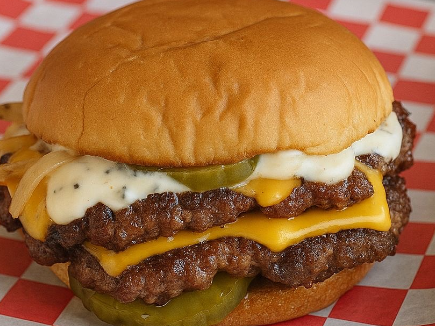 DOBLE BEEF PATTY - QUESO CHEDDAR - PEPINILLOS - ADEREZO WALLACE - CEBOLLA