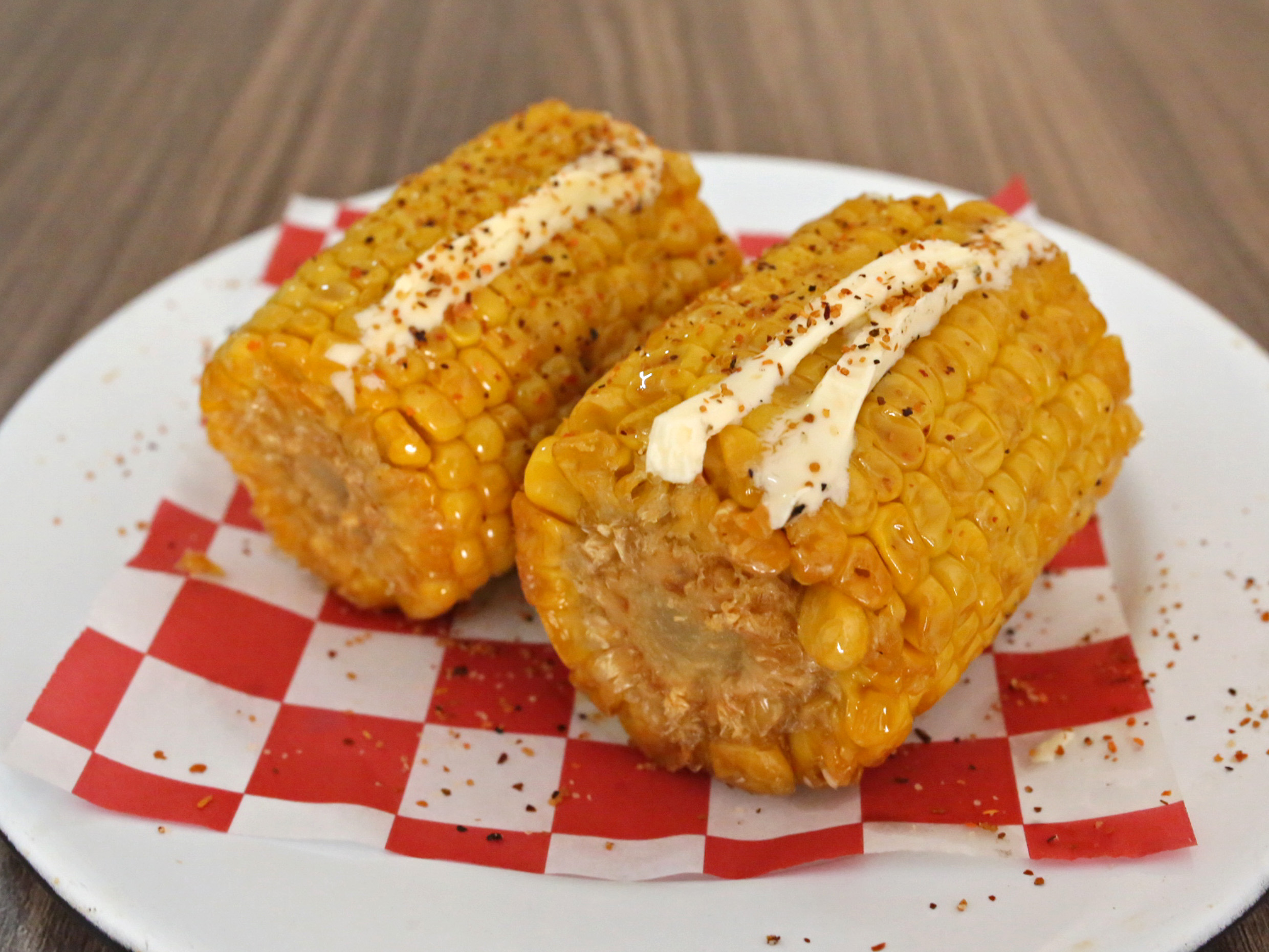 Jugosa carne de res, hecha en casa, queso manchego, cebolla asada, tocino, chilaca y salchicha asada acompañado de papas gajo.