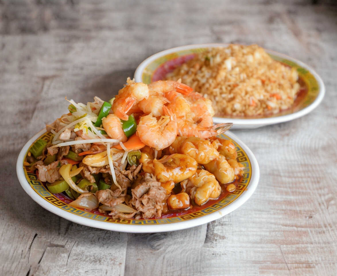 2 Guisados con Camarón, Arroz o Pasta
