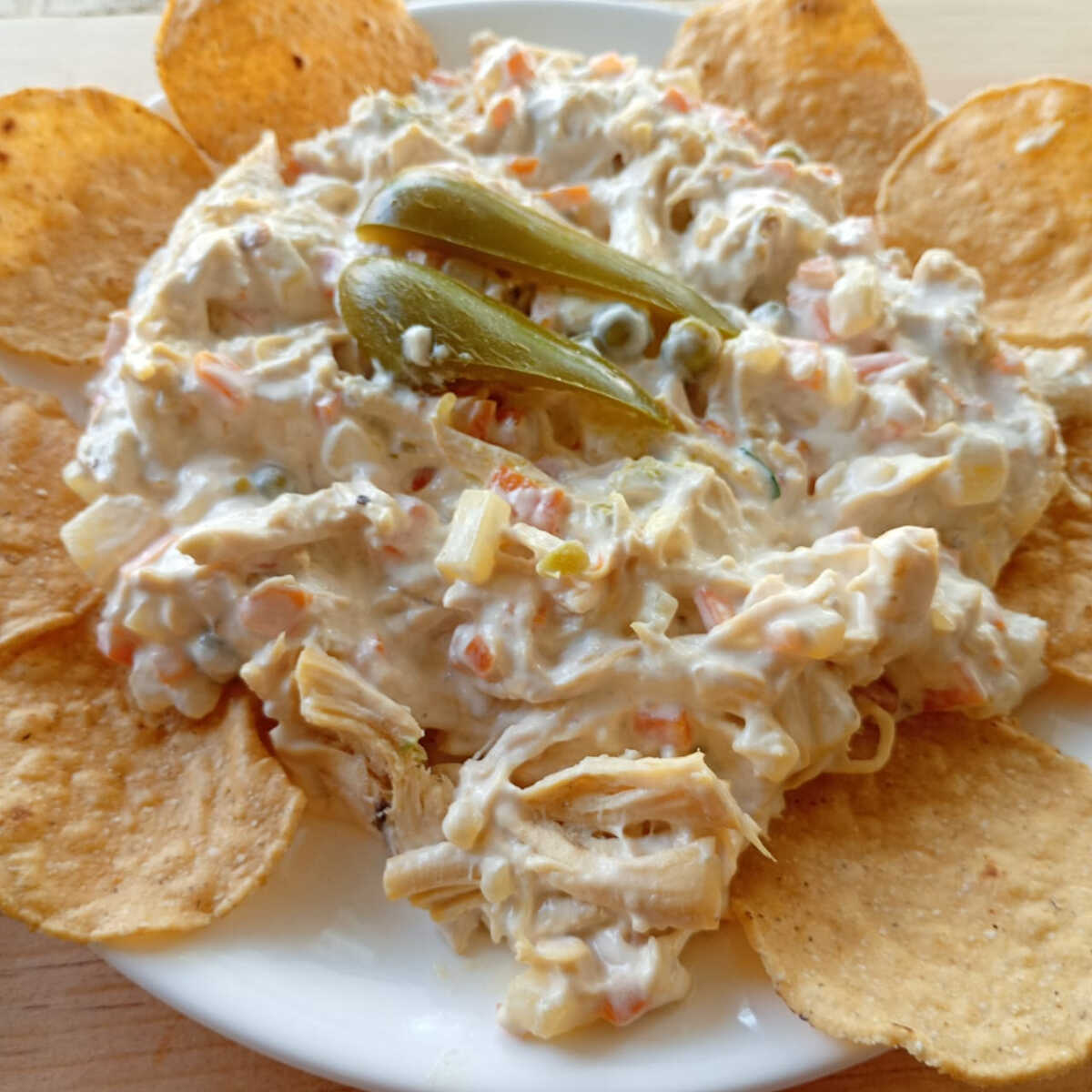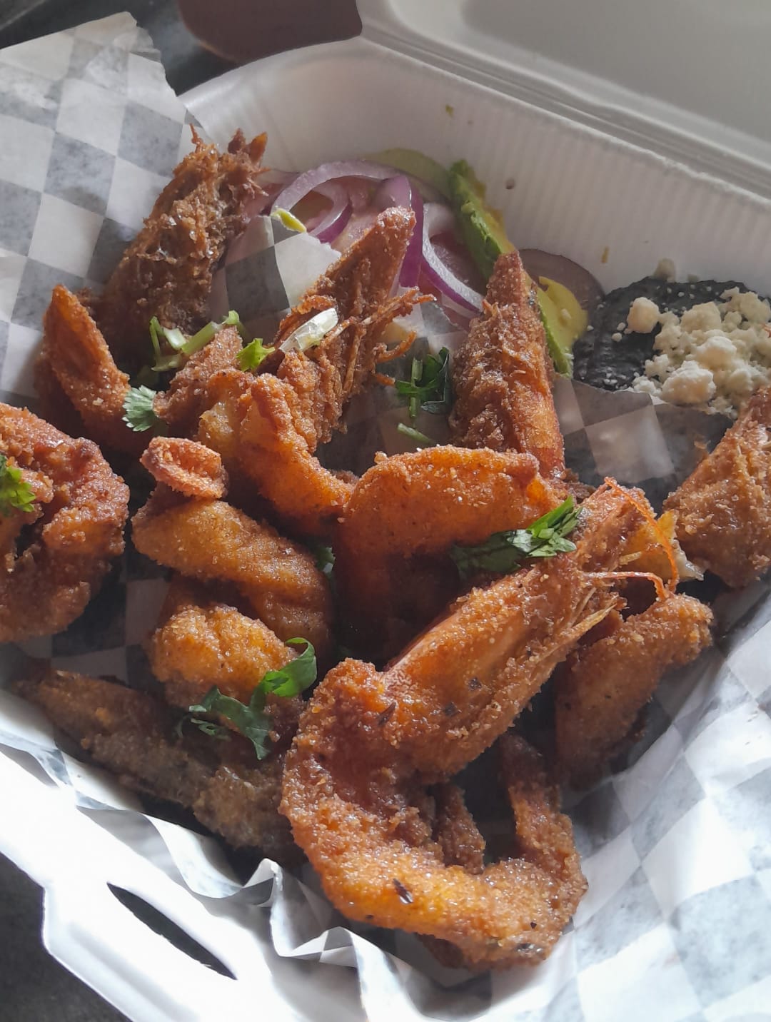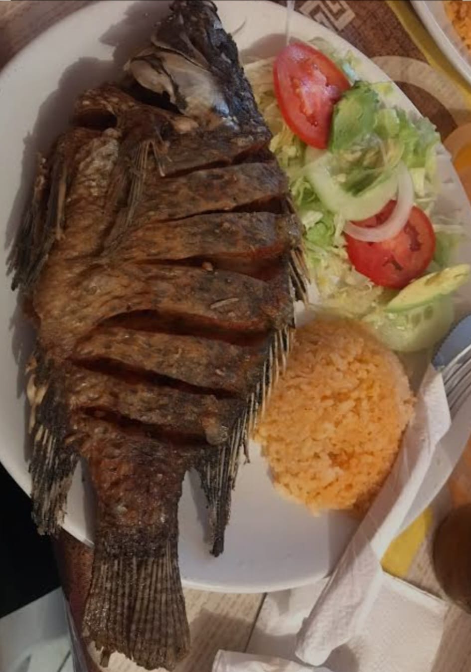 Acompañado de frijolitos fritos, ensalada y tortillas.