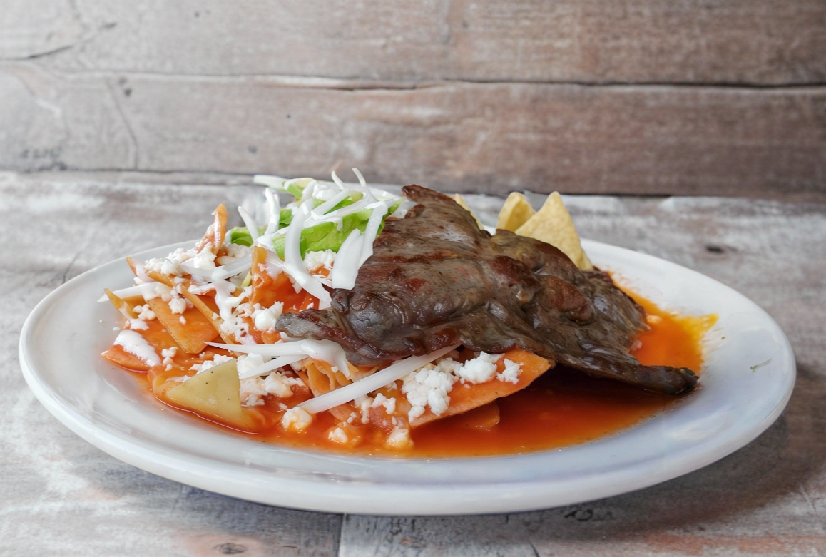 Frituras de maíz bañados en una exquisita salsa roja y pollo deshebrado, coronadas con queso chapaneco y crema.