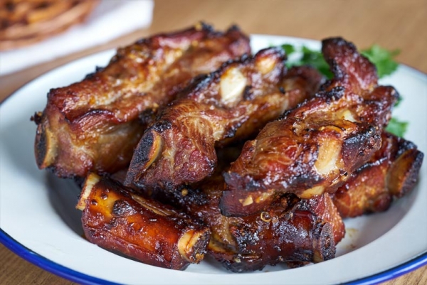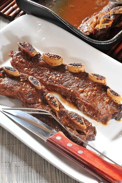 Jugosa costilla de res asada.