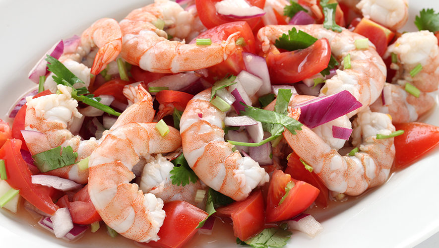 Ensalada de camarón mesclado con pico de gallo.