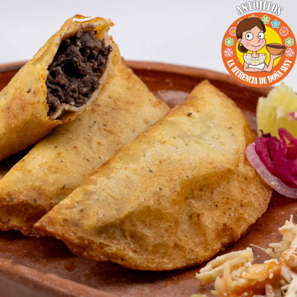 4 piezas de empanadas 100% de Maíz rellenas de frijol negro refrito