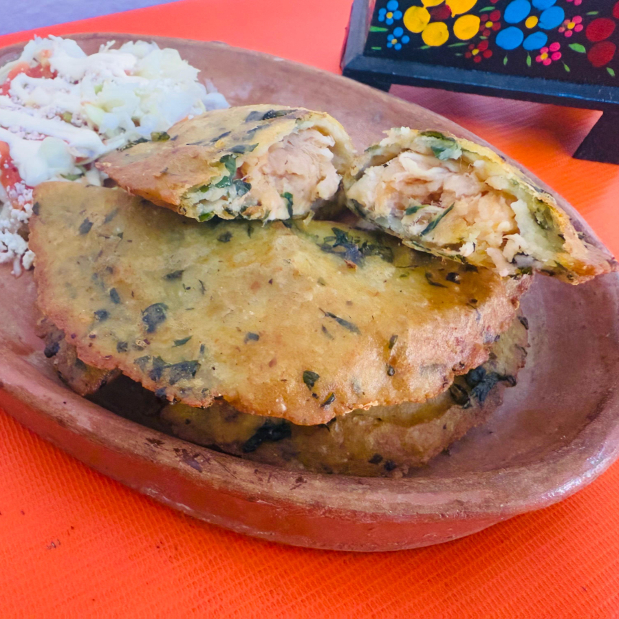 4 piezas de empanadas con masa de Chipilín rellena de Quesillo