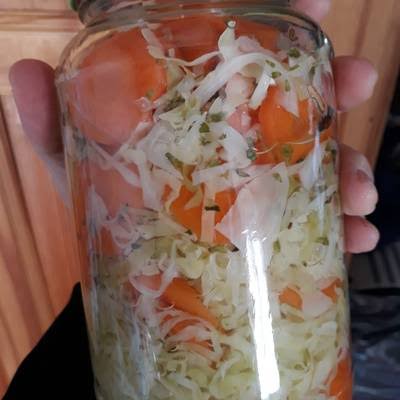Tortillas hechas de maíz con repollo envinagrado, salsa (con picante o sin picante a elegir) y queso. Guisos: pollo guisado con papas, molida de res guisado con papas.