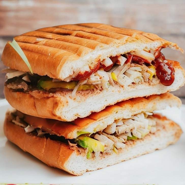 Platillo icónico de la ciudad de Comitán de Domínguez. Elaborado con pan francés, pierna de cerdo, picles, queso chiapaneco y salsa agridulce.