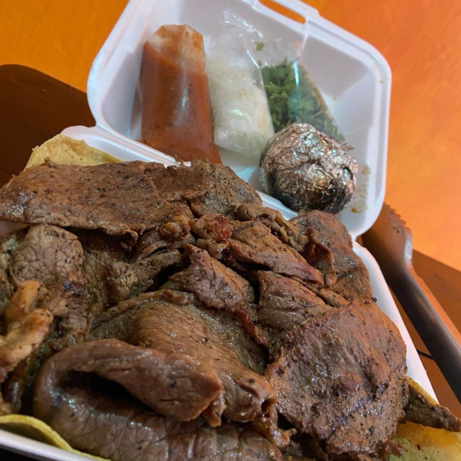 CARNE ASADA X ORDEN PARA 2 PERSONAS , INCLUYE COMPLEMENTOS SALSA ,CEBOLLA,CILANTRO ,TORTILLAS