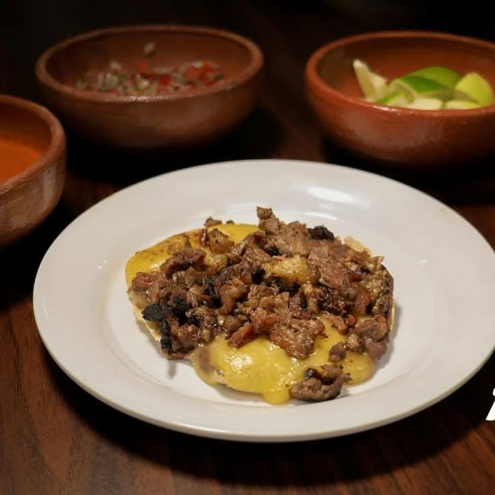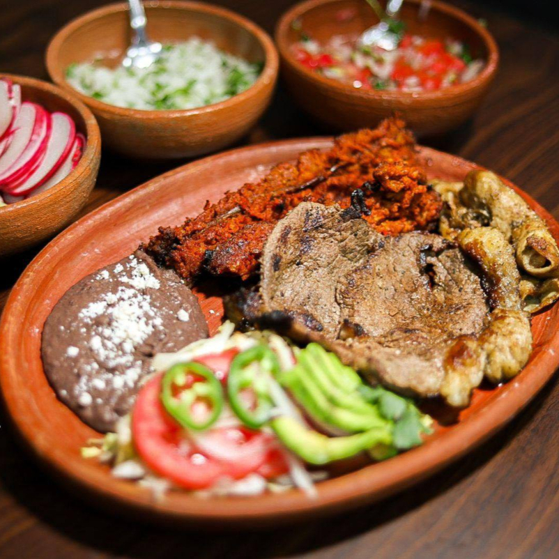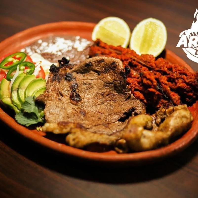 Jugosa carne de res asada al carbón, sazonada con nuestro toque especial. Servida con frijoles, cebollitas y tortillas calientes. ¡Un clásico lleno de sabor mexicano!