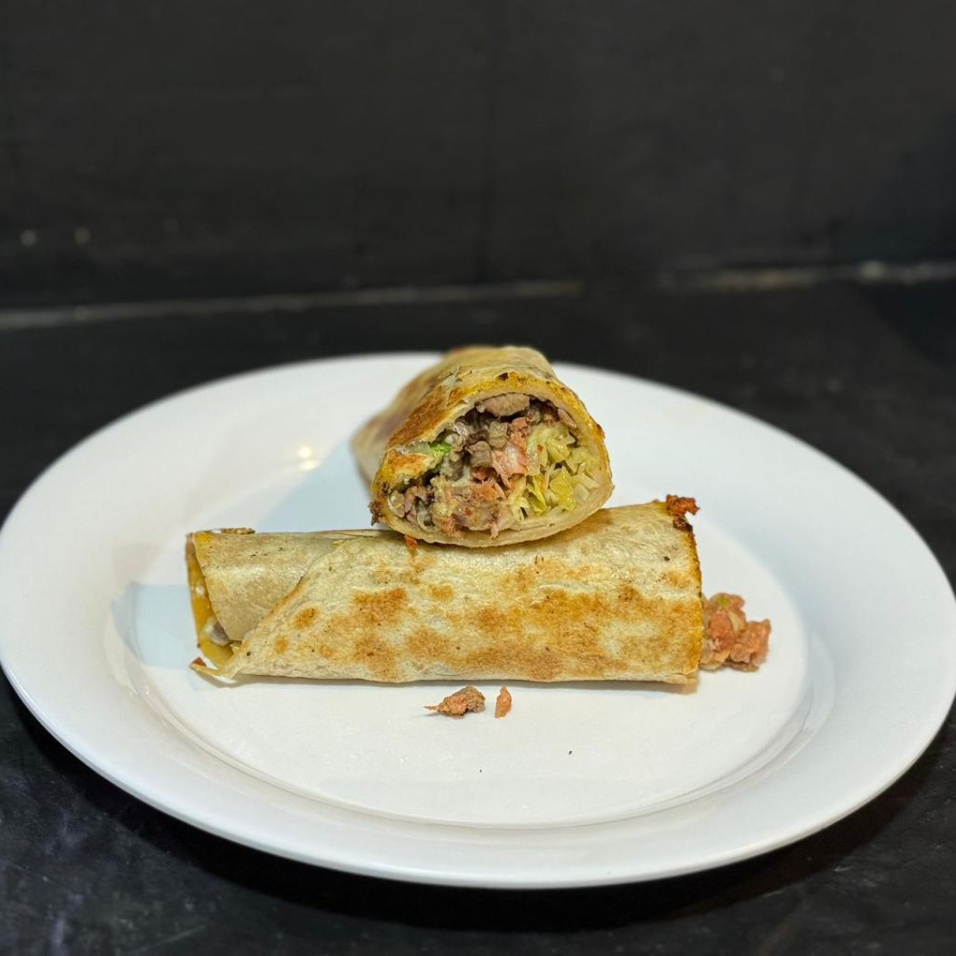 Hecho con ingredientes frescos y preparados al momento: carne ASADA CHORIZO O LONGANIZAjugosa, arroz especiado, frijoles, queso derretido y una mezcla de verduras crujientes. Envuelto en una tortilla doradita y acompañado con salsa casera.