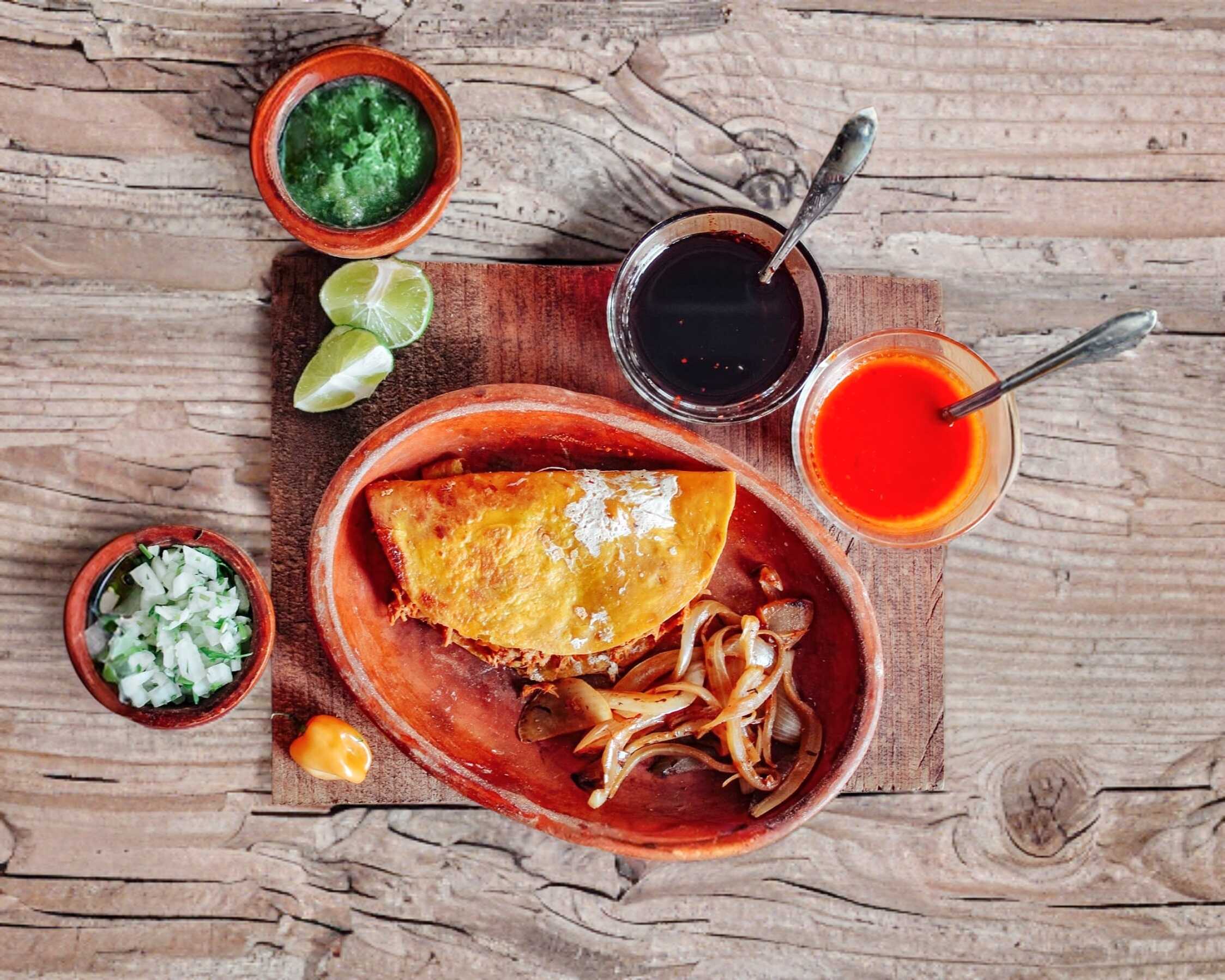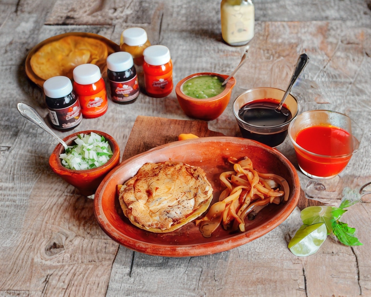 Porción personal, Carne de Barbacoa, Quesillo , Queso Manchego, Queso Asadero.