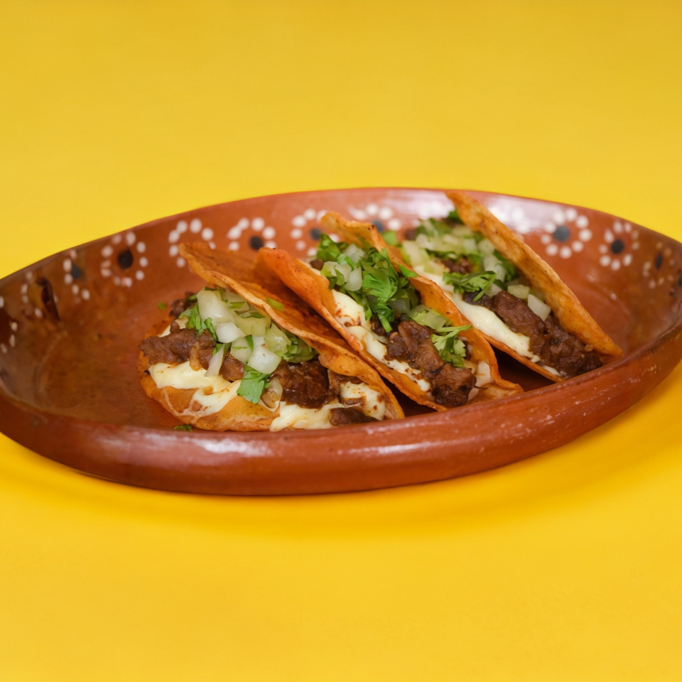 Tortilla de maíz o Harina y carne jugosa de birria.