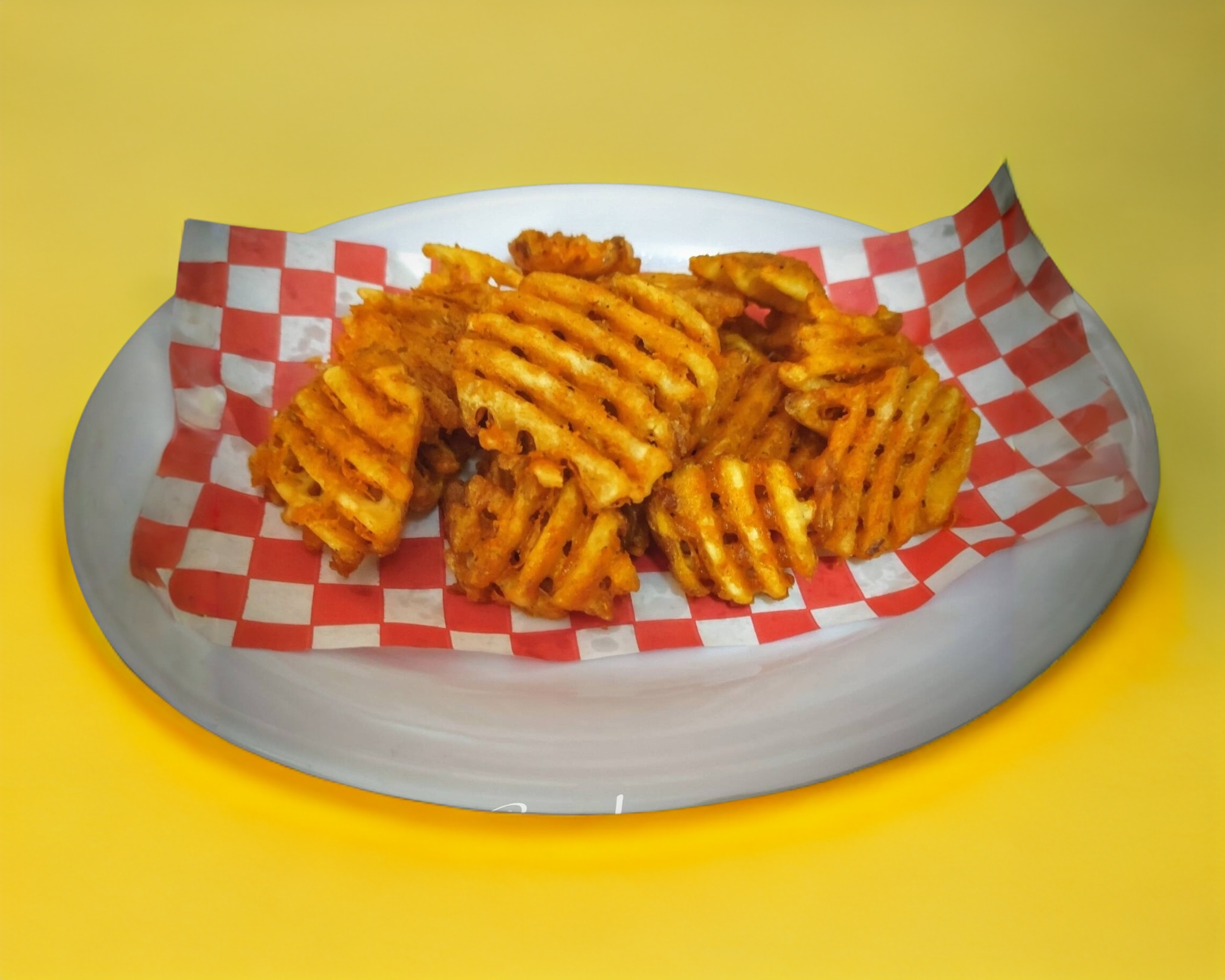 Orden de papás a la francesa sazonadas con especies acompañado con su salsa catsup