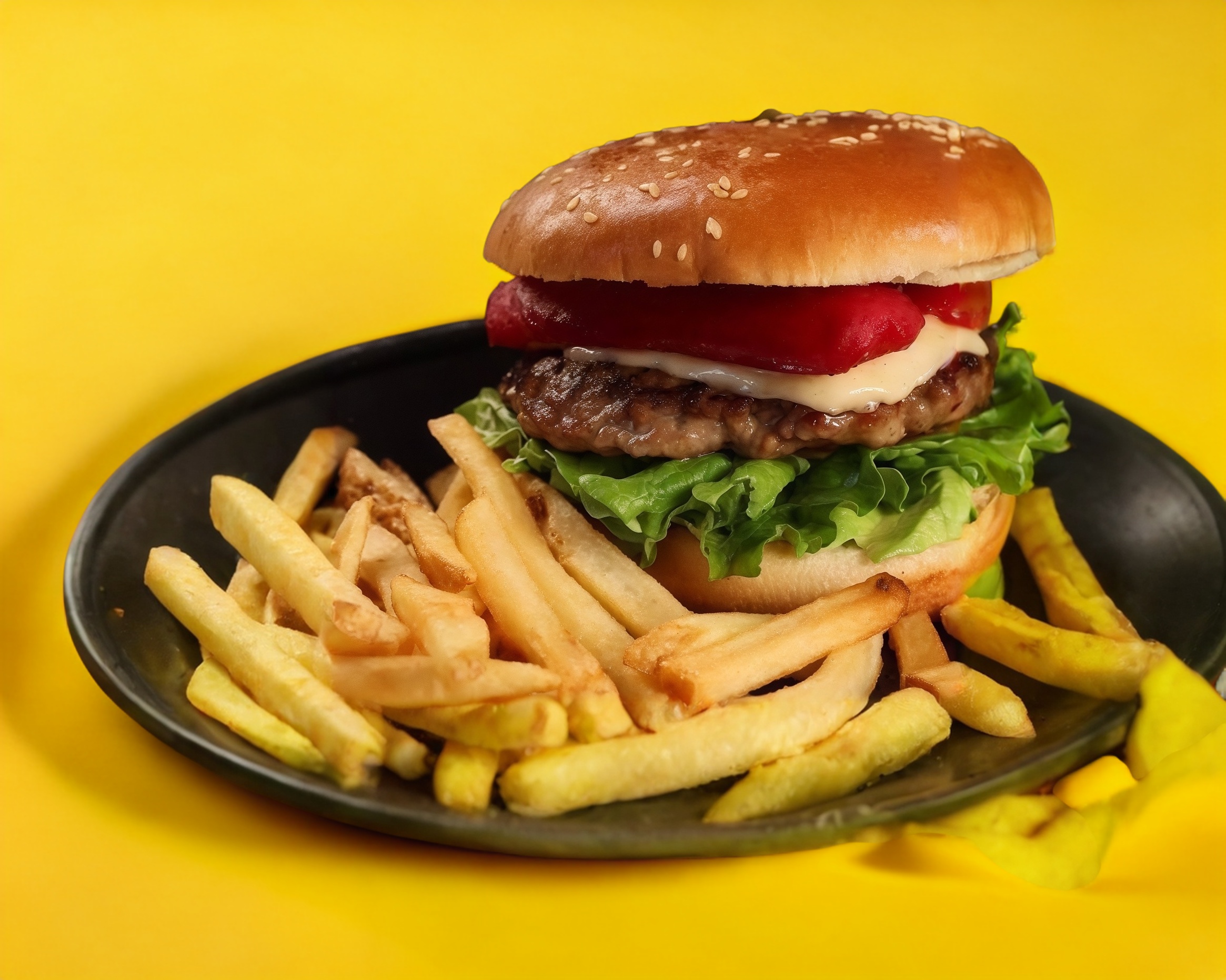 Hamburguesa clásica, con 100g de carne de res, jamón de pavo, Tocino, queso amarillo tipo cheddar, Aguacate y sus vegetales(tomate y lechuga)+ catsup y mayonesa, acompañado de una porción de papas a la francesa sazonadas 100grms. Aprox.