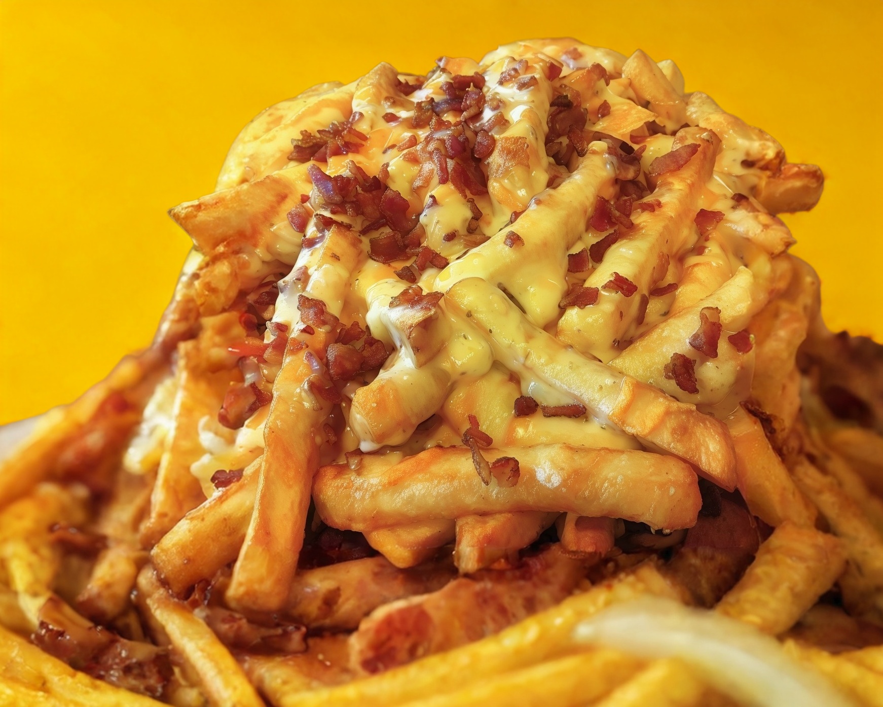 Orden de papas a la francesas bañadas con especias, Queso amarillo y salsa catsup.