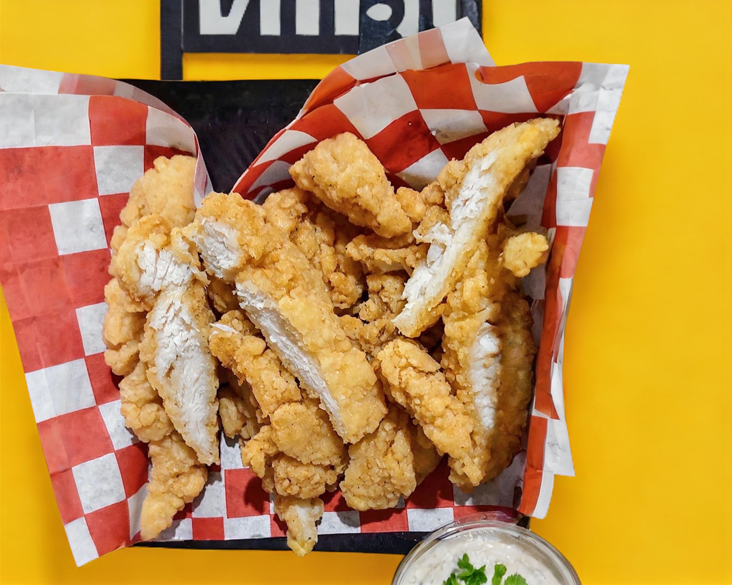 Orden de fajitas &Tenders; tiras de pollo empanizada y bañadas en salsa de su preferencia acompañado de una porción de papas y su Aderezo ranch. son 200grms