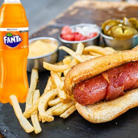 Hotdog clásico, con una orden de papas a la francesa más un Refresco de Sabor