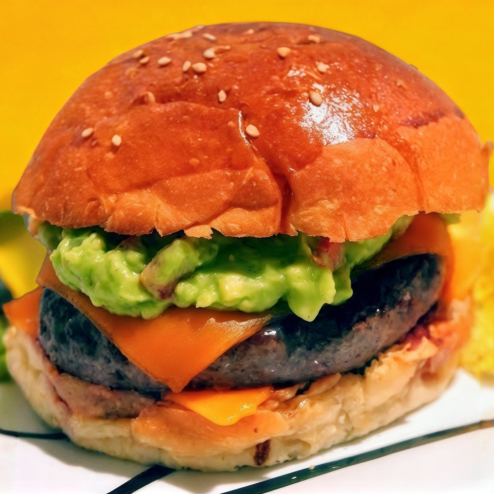 Hamburguesa clásica, con 110 g de carne de res, jamón, tocino, queso amarillo, aguacate, queso Philadelphia y todos sus vegetales.