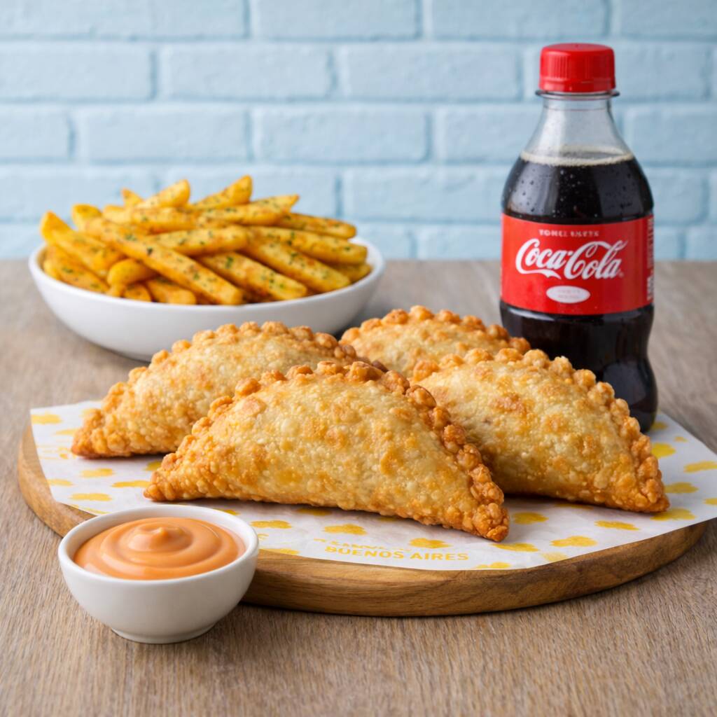 4 Empanadas + Papas Porteñas Medianas (125g) + 1 Refresco (355ml) + 1 Aderezo Grande (50ml)