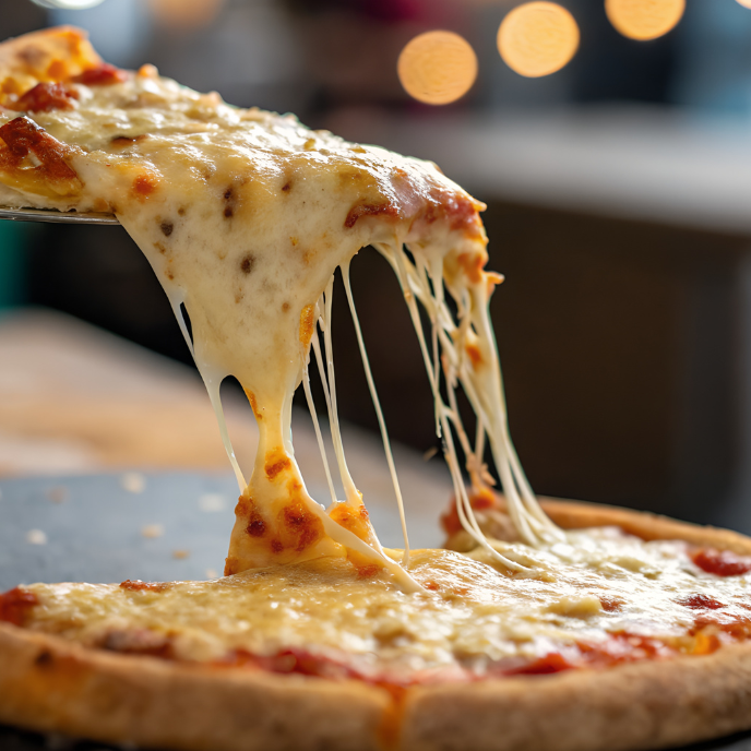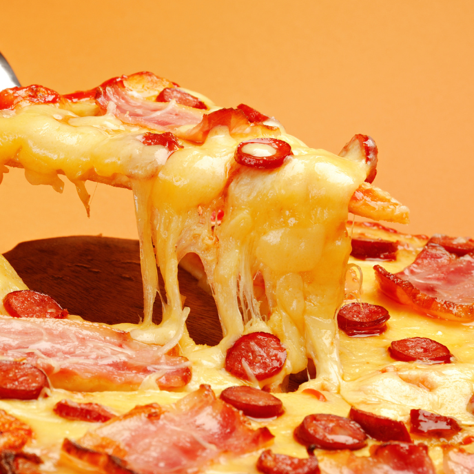 35 cm De pizza de pan de 35 cm con salsa de tomate italiana, jamón, pepperoni, chistorra y queso mozzarella.