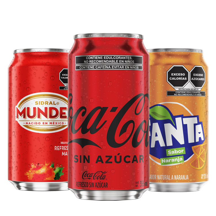 Refresco de lata 355 ml Coca Cola original, Coca Cola ligth, Coca Cola zero, Fanta de naranja, Sprite, Mundet de manzana.