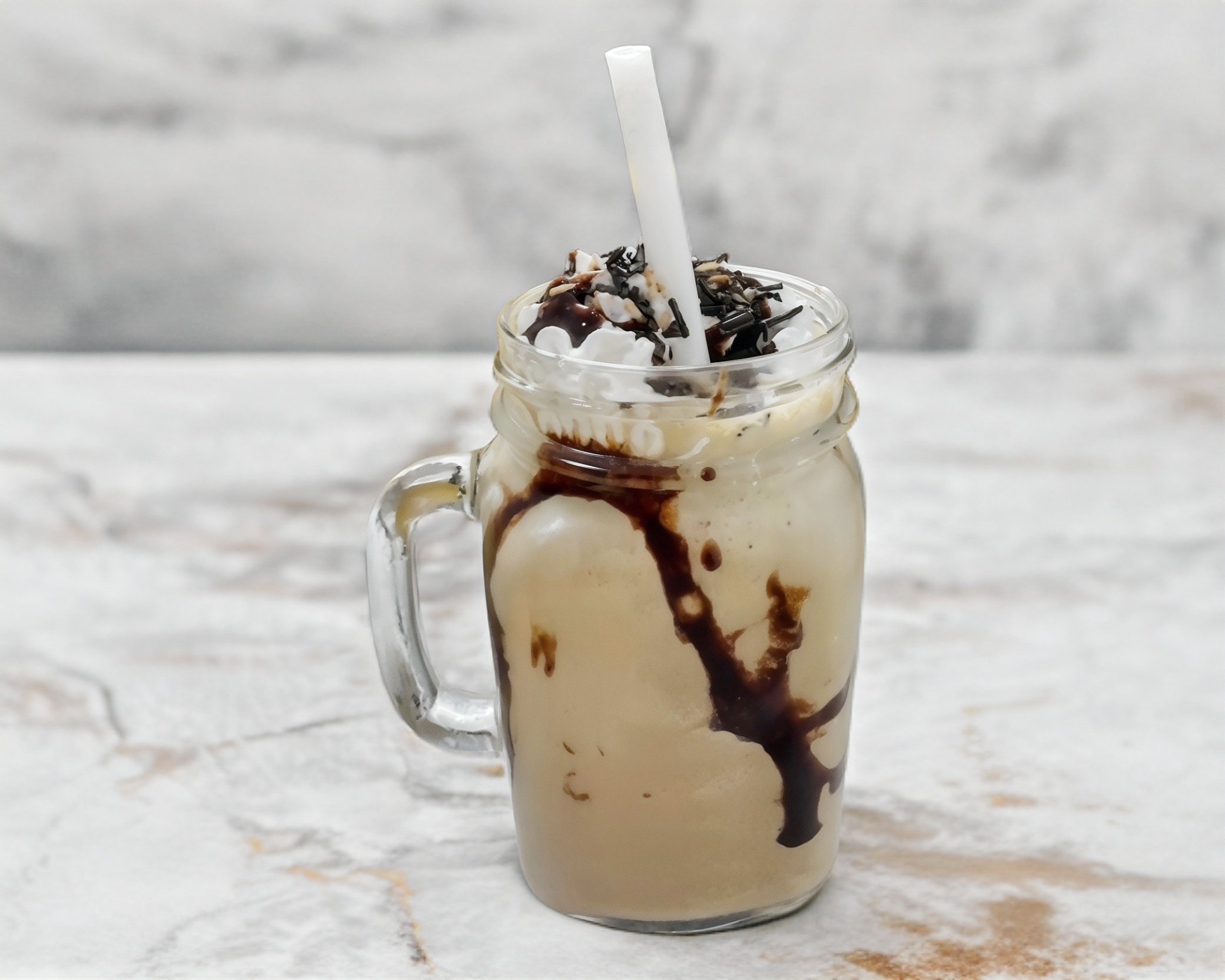 BEBIDA FRIA PREPARADA A BASE DE CAFE Y LECHE , CONTINIE CHANTILLI Y CHOCOLATE LIQUIDO
