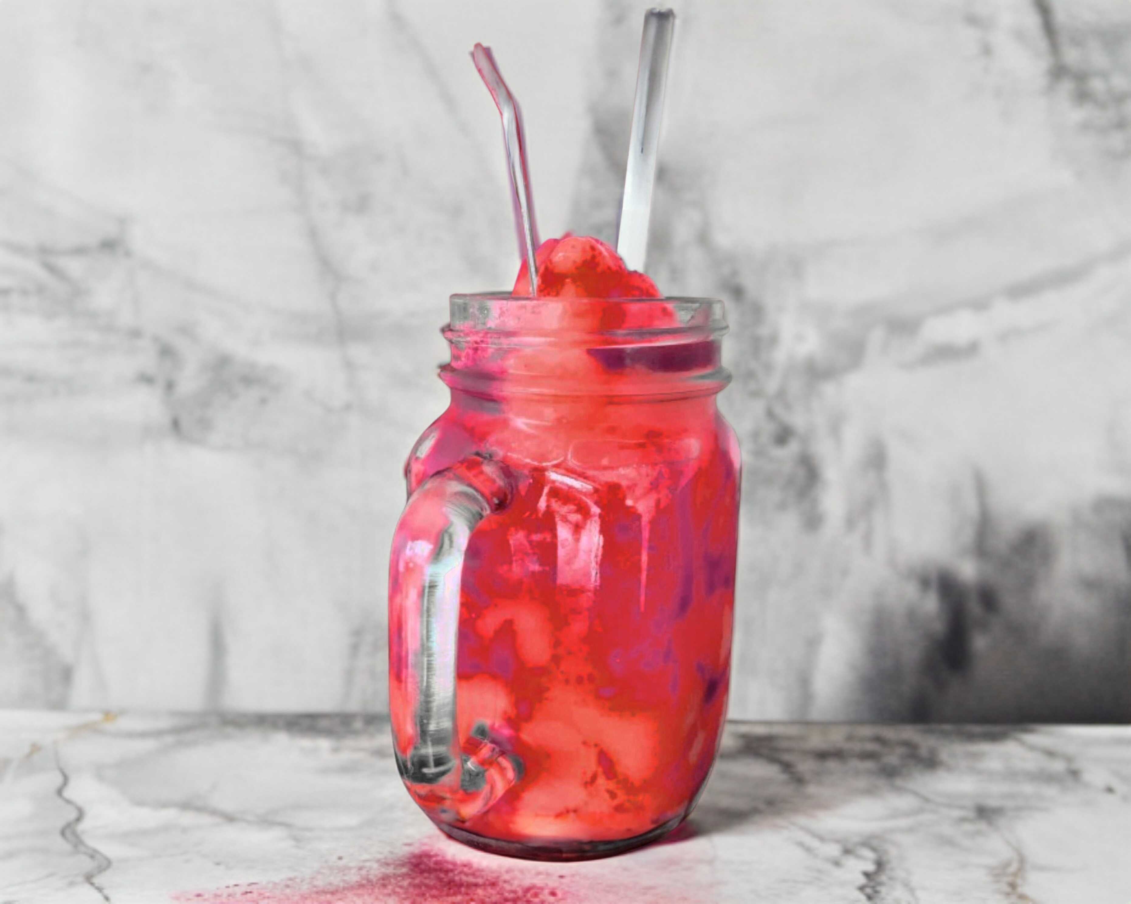 BEBIDA FRIA A BASE DE HIELO CON FRUTA, CON FRESAS