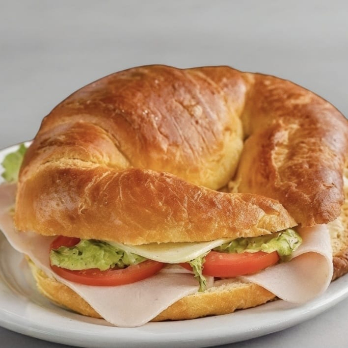 cuernito relleno de jamon, lechuga, queso manchego y jitomate