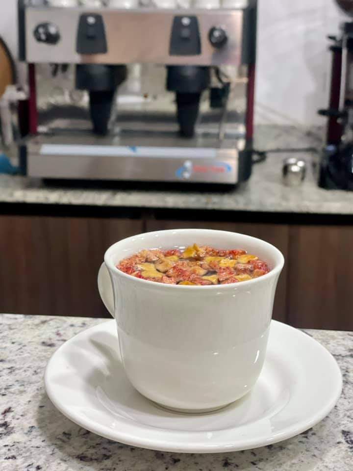 Mouse de queso crema, helado de vainilla y lcor de cafe