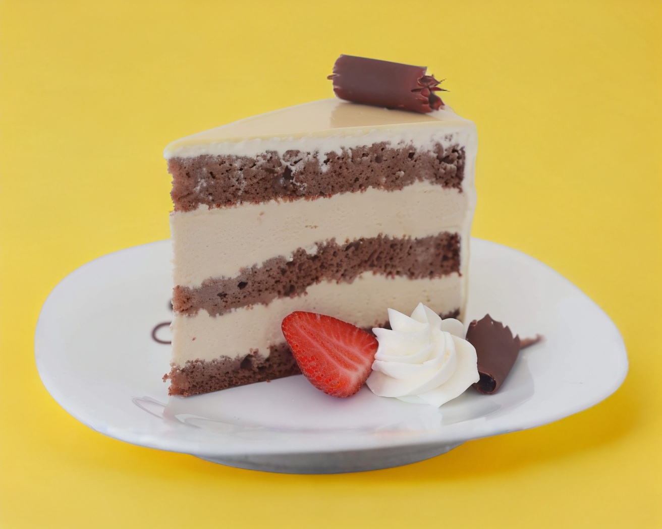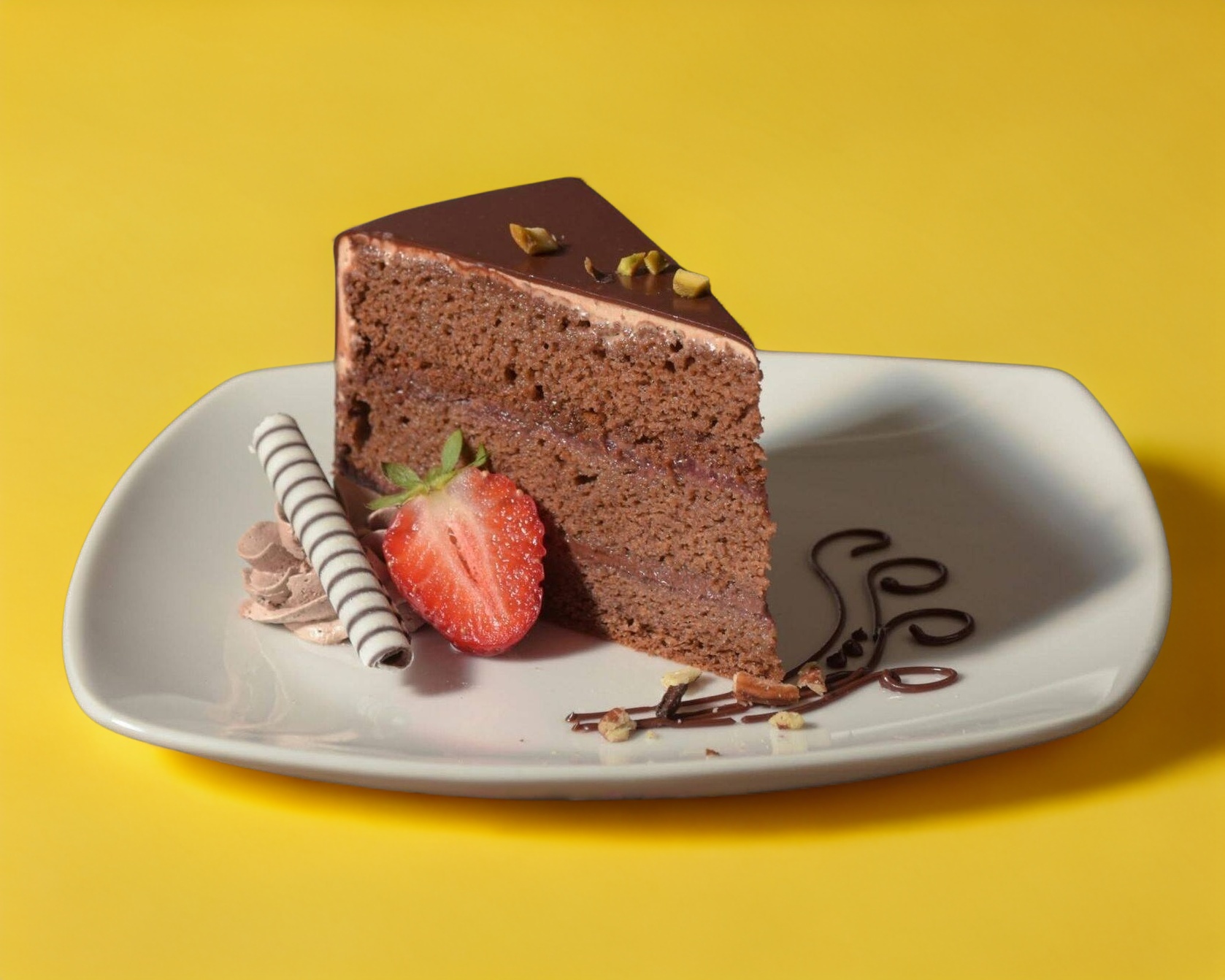 bizcocho de cocoa, ganache de chocolate, humectado con jugo de cereza y baileys