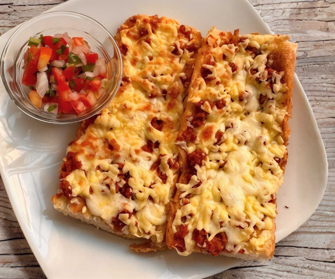 Queso manchego, champiñones, pimiento verde y rojo, aderezo mil islas