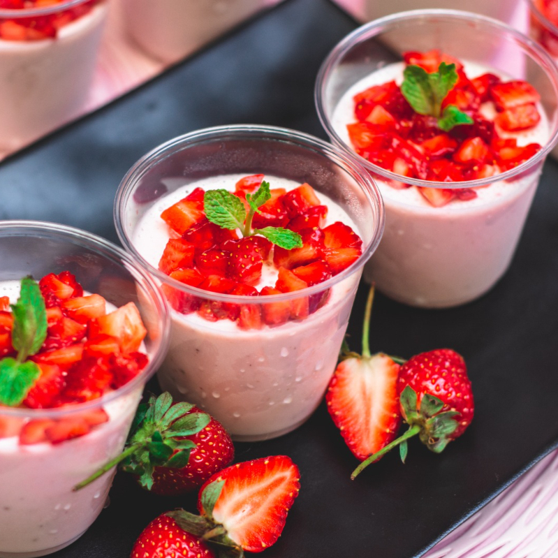 Deliciosa rebanada de pastel 3 leches con crema de fresa
