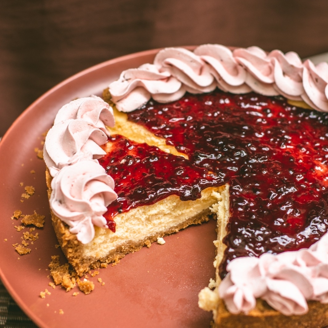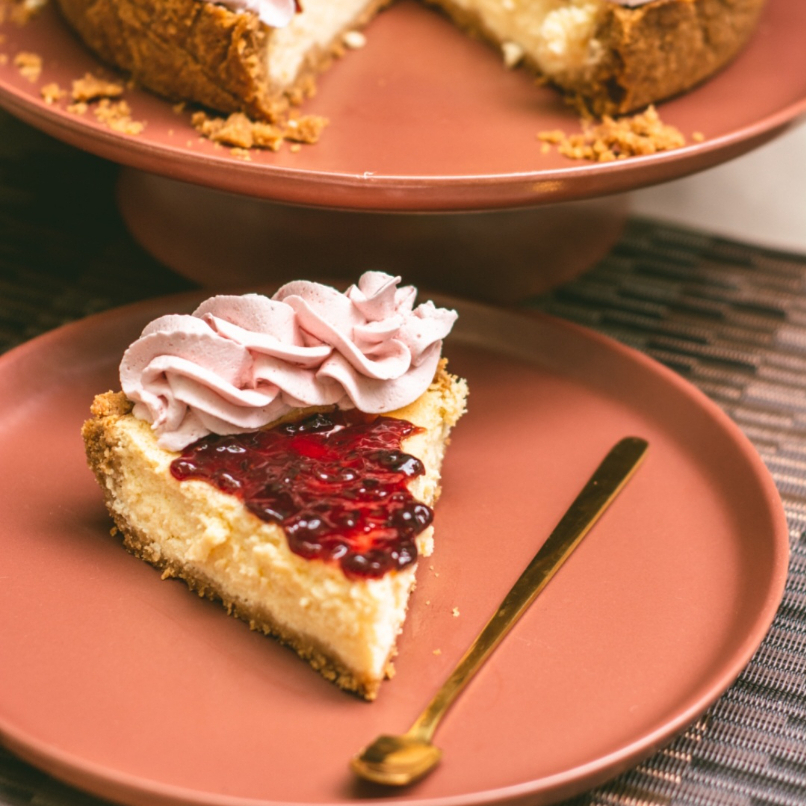 Deliciosa Rebanada de Pay de Queso Cubierto de Mermelada de Zarzamora