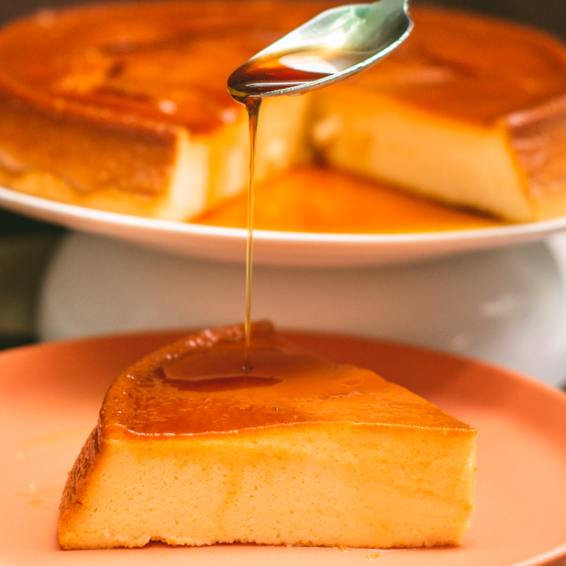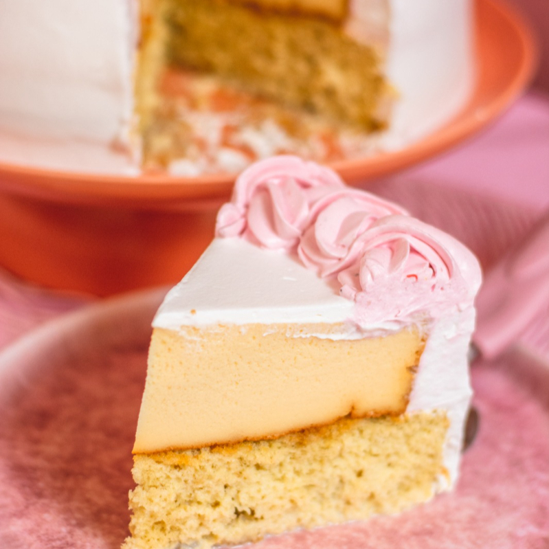Deliciosa Rebanada de Pastel Tres Leches Mitad Flan Fapolitano