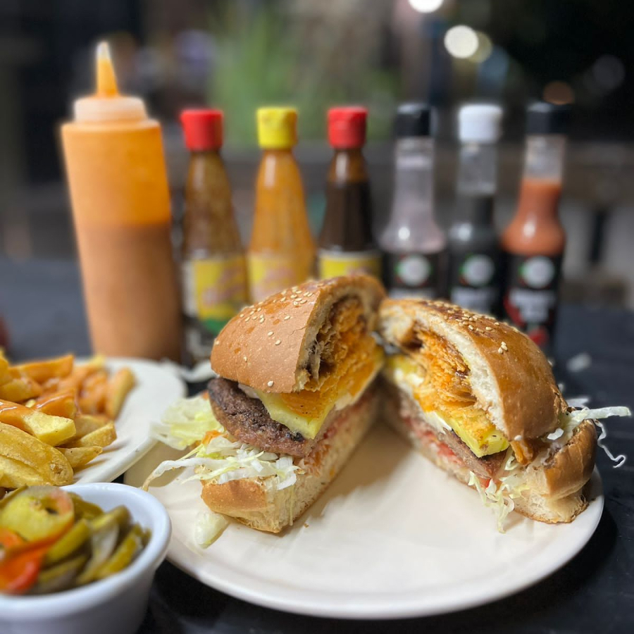 250 GRAMOS DE CARNE, QUESO OAXACA, PIÑA CARAMELIZADA, QUESO AMERICANO