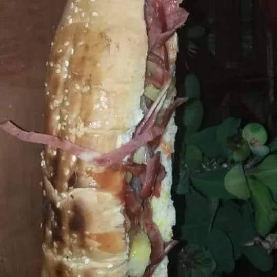 SALCHICHA DE PAVO, TOCINO, CEBOLLA CARAMELIZADA, TOMATE