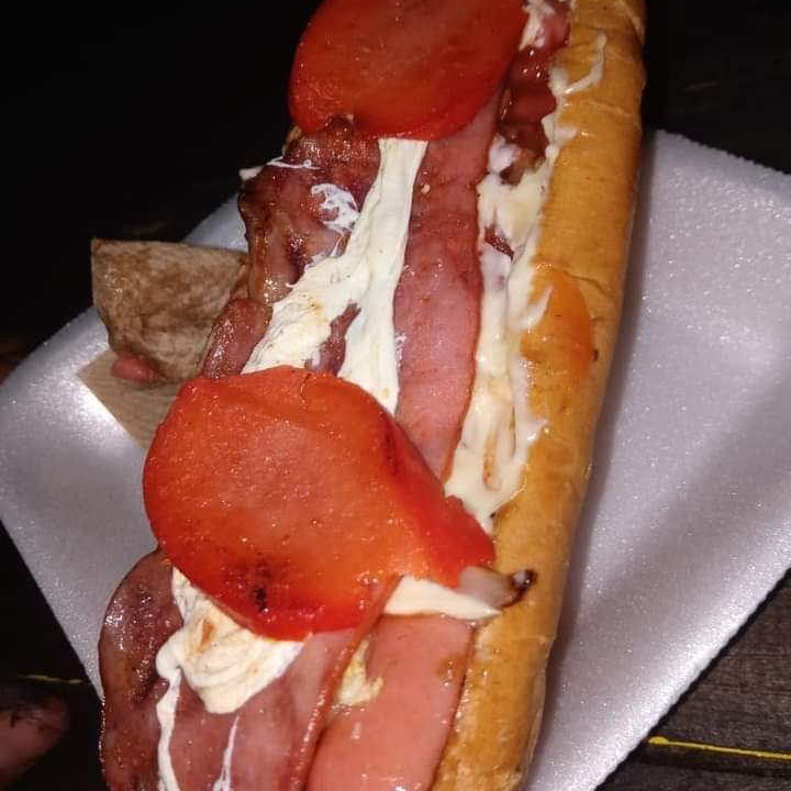 SALCHICHA POLACA, TOCINO, CEBOLLA CARAMELIZADA, TOMATE