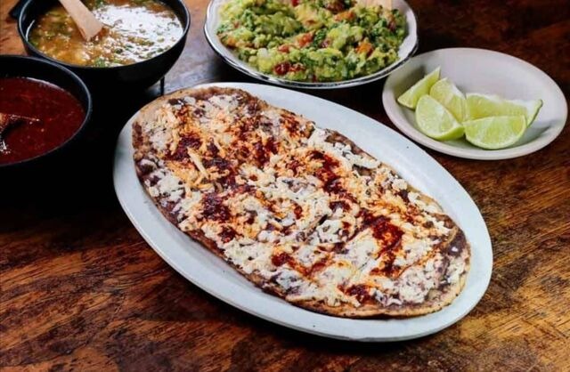 Tlayuda de 3 carnes asada, pastor y chorizo. Sin cambios.