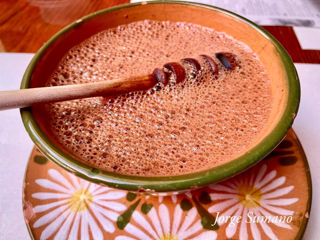 Bebida caliente a base de maíz y chocolate oaxaqueño.