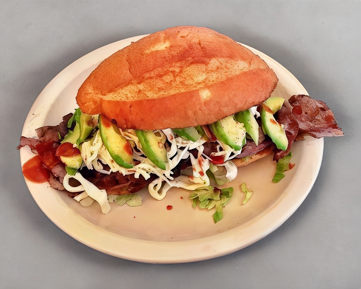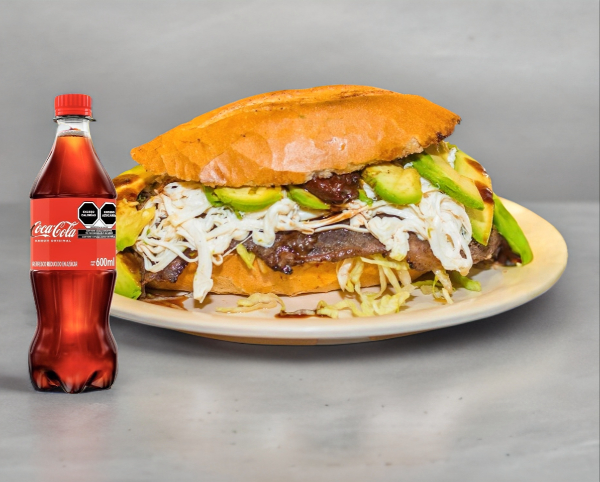 Bolillo aderezado, bistec, lechuga, quesillo, aguacate y chipotle.