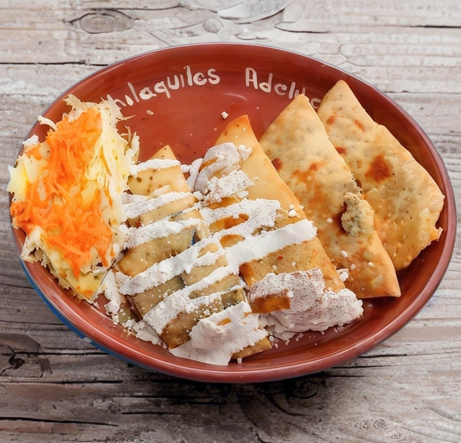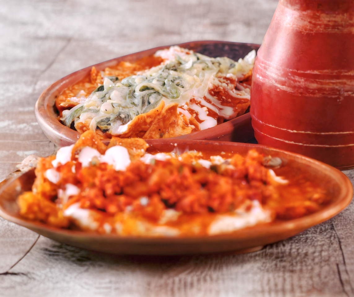 Deliciosos chilaquiles incluye salsa de tu preferencia, acompañados de 1 guiso de tu preferencia.(porcion personal)