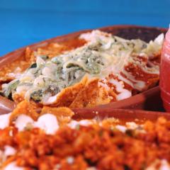 Chilaquiles con salsa de tu preferencia y un guiso de tu elección.