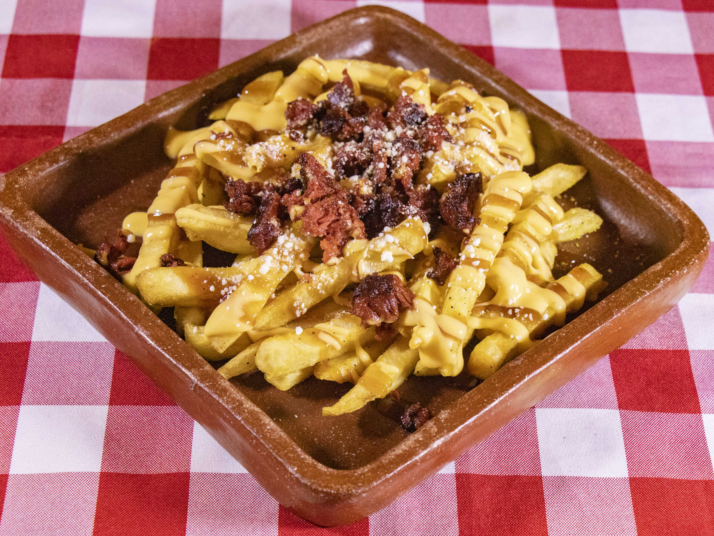Tiras de papa sazonadas y fritas. Bañadas en salsa de tu elección.