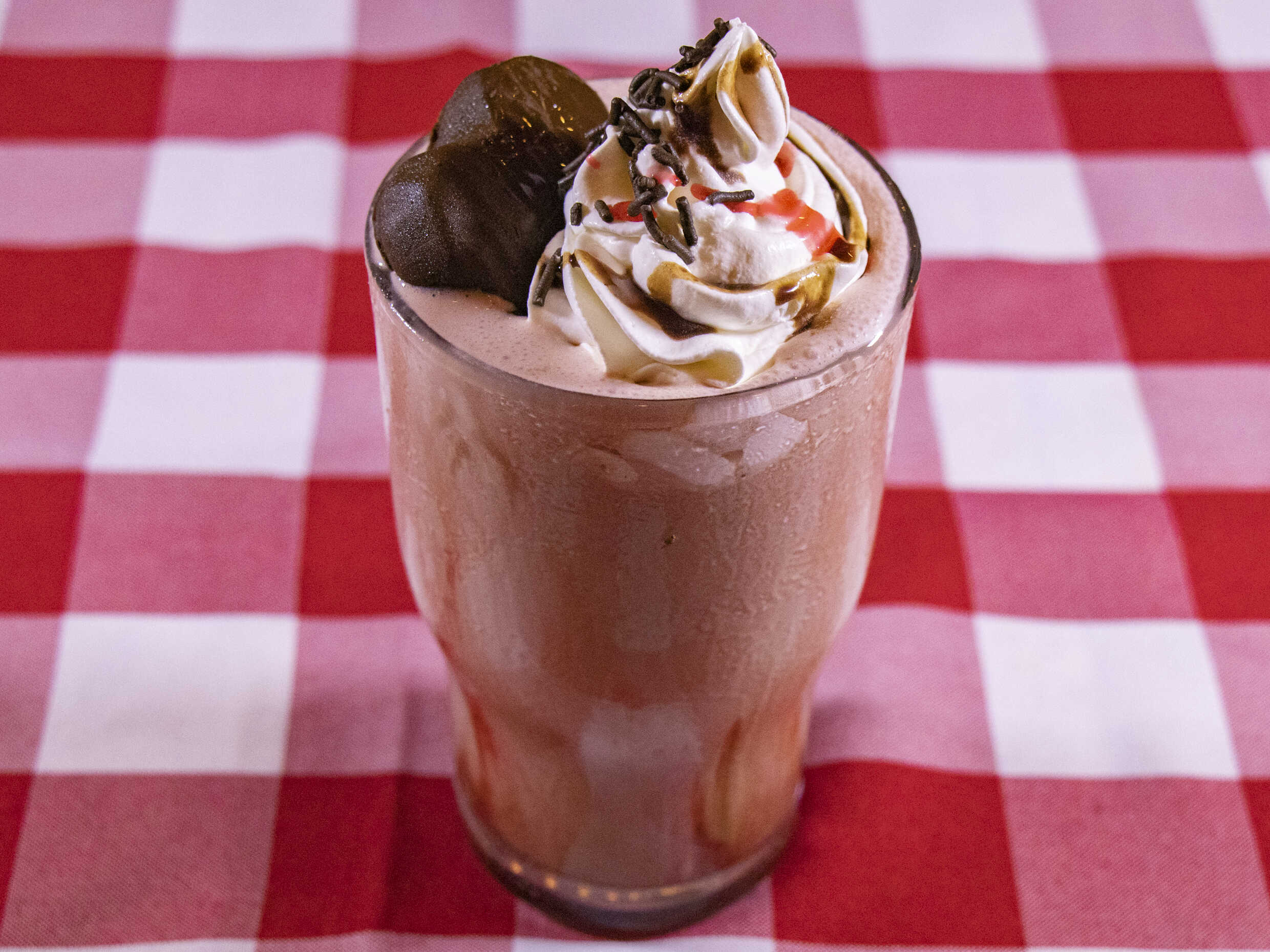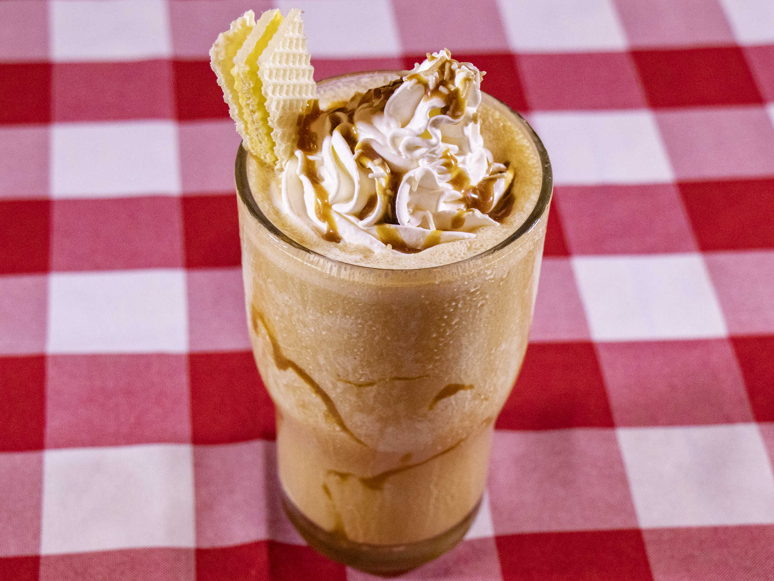 Pan artesanal, 150 grs de carne, mayonesa, mostaza, cátsup, mezcla de quesos, jamón, lechuga, champiñones a la plancha, cebolla caramelizada, pepinillos y tomate.