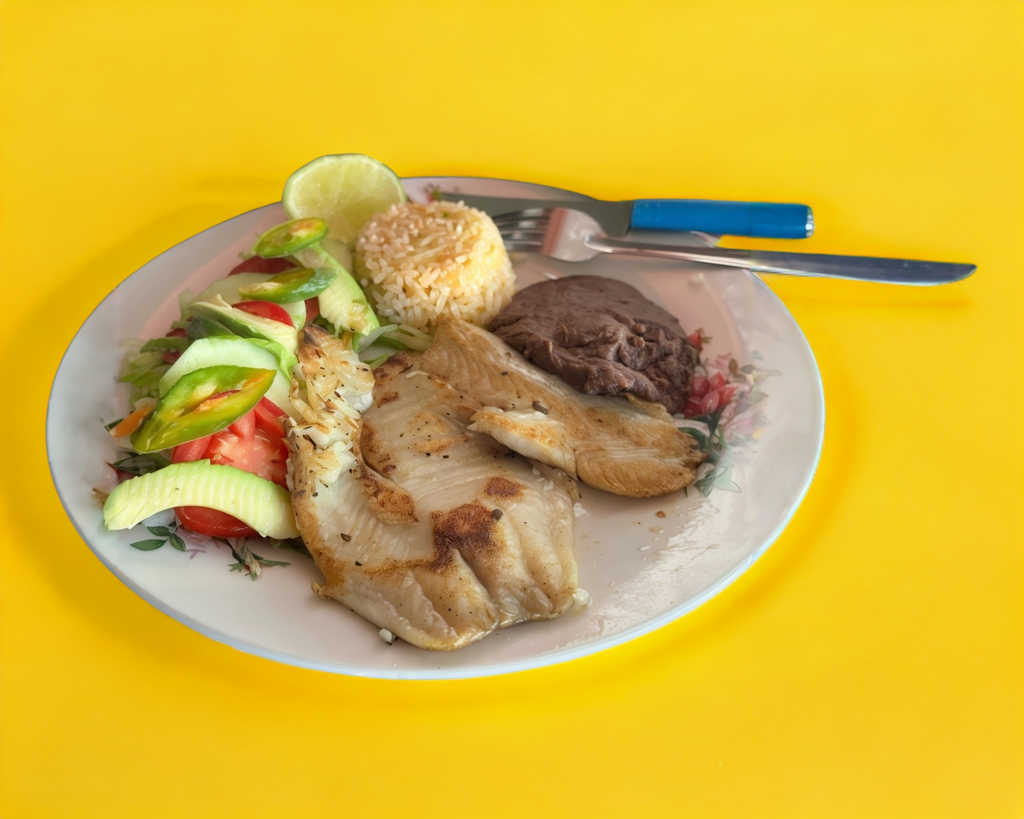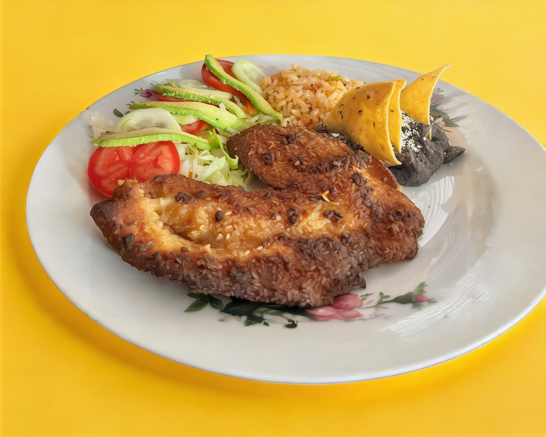 Incluye ensalada, frijoles y arroz.