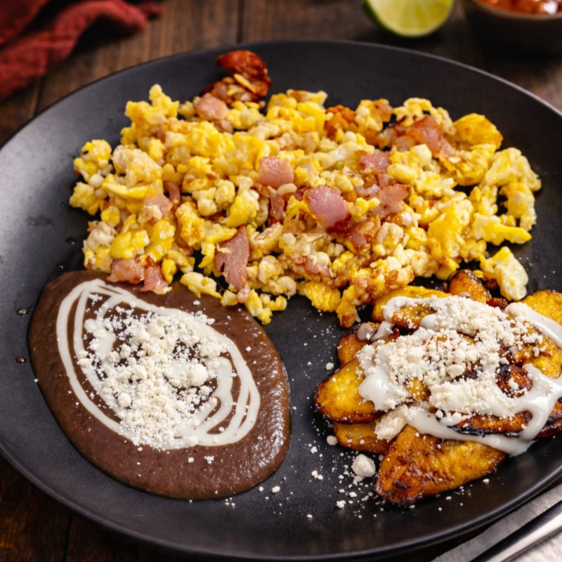 HUEVOS AL GUSTO, JAMON, CHORIZO, TOCINO, A LA MEXICANA, SOPA DE GATO, ACOMPAÑADO DE FRIJOLES, PLATANOS FRITOS, TORTILLAS
