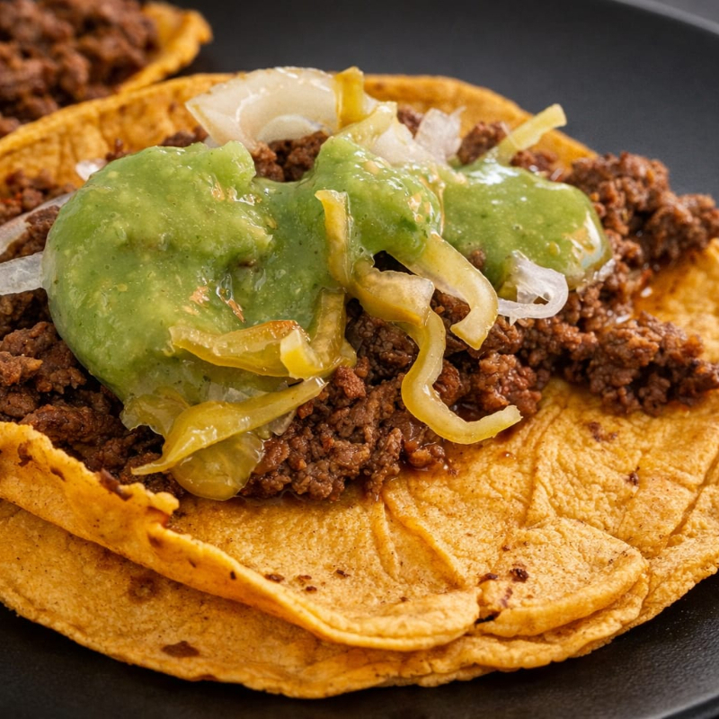 TORTILLA OAXAQUEÑA CON EXQUISITO HUNTADO TRADICIONAL, ADEREZADO CON FRIJOL Y LECHUGA Y MAXIMA CALIDAD DE CARNE SIRLOIN