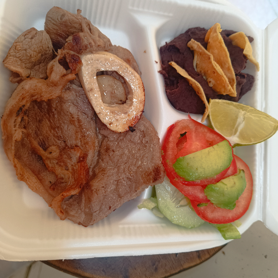 Carne de res acompañado de frijol, arroz o ensalada ( 2 guarniciónes a elegir)