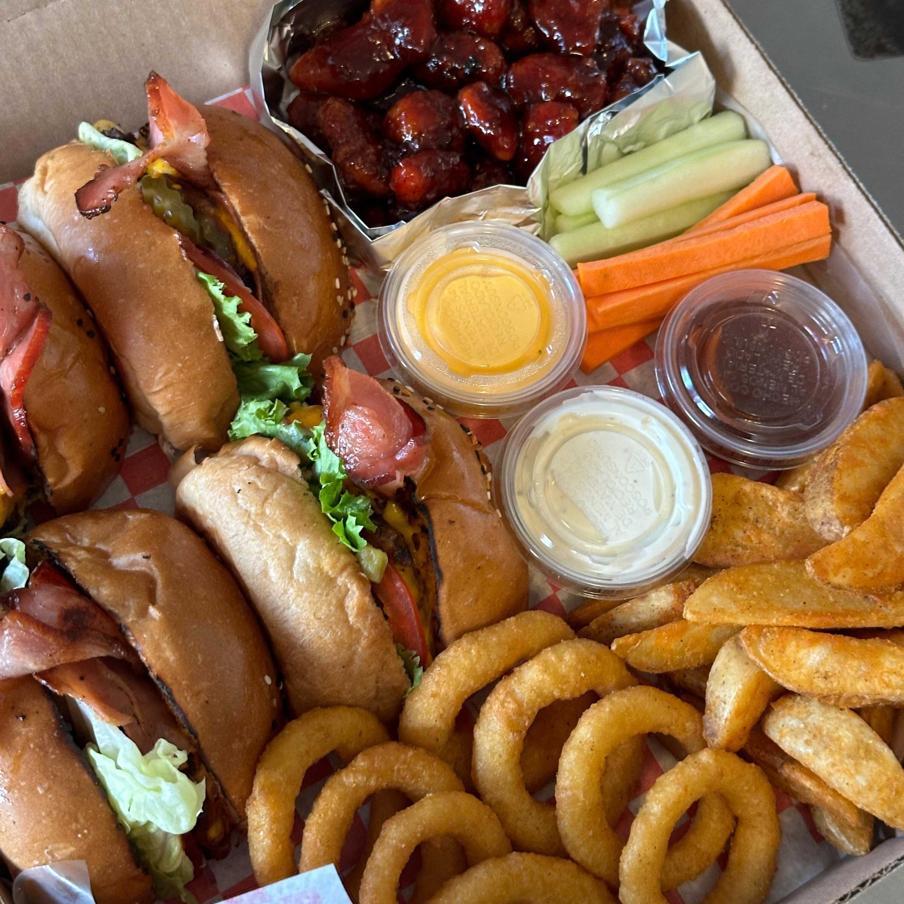 4 HAMBURGUESAS A ELEGIR, ALITAS O BONELESS, 2 COMPLEMENTOS, 4 DIPS